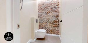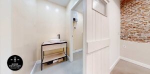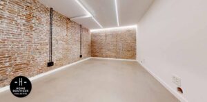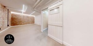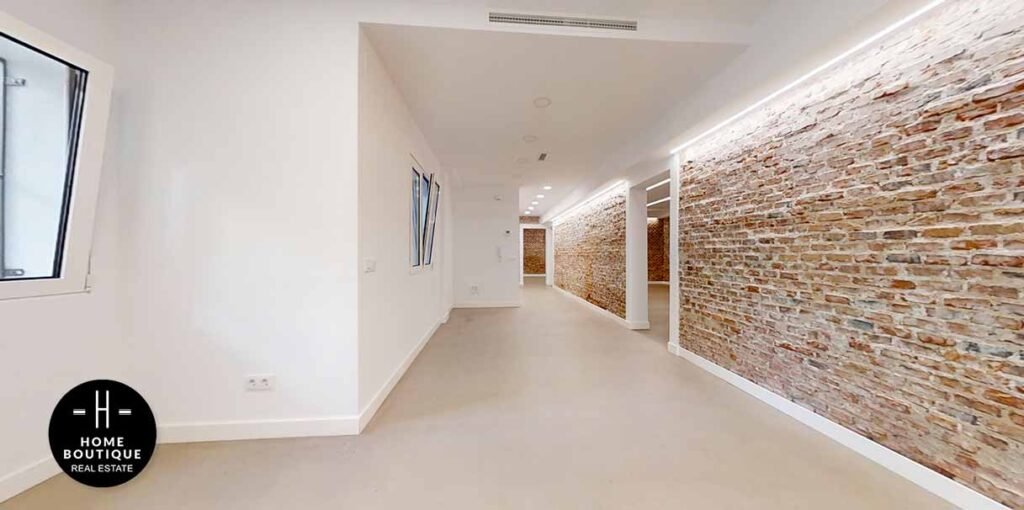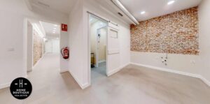 En el pasillo está hecho un hueco para terminarlo como armario empotrado o armario de almacenaje. Junto a él se encuentra una segunda entrada a la oficina.